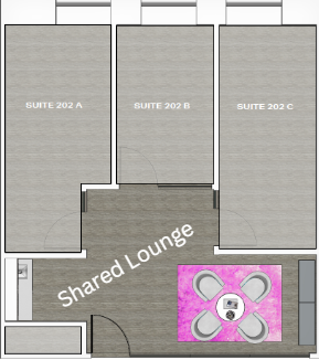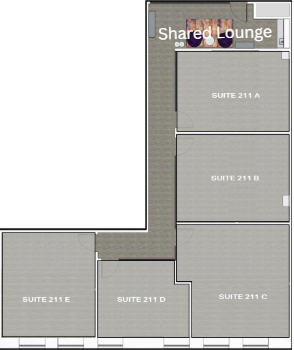Newly renovated office suites include private seating area